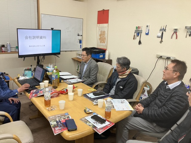 2月20日19:00より株式会社上田ゴム工業様で2月度委員会を開催させていただきました。リアルにて鈴木会長、浦田事務局長、吉田副会長、山本副会長、上田委員、黒谷の参加でした。オンラインの出席はございませんでした。